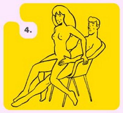 这种体位需要确定你有坚固且舒适的椅子以避免发生事故。装饰性的椅子是不可取的