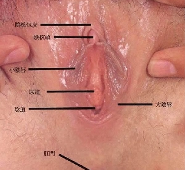 其中大阴唇双股内侧一对隆起的皮肤皱襞,起自阴阜,止于会阴。小阴唇为位于大阴唇内侧的一对薄皱襞。表面湿润,色褐、无毛、富于神经末梢,故极敏感。阴蒂位于两侧小阴唇之间的顶端,类似男性阴茎海绵体相似的组织,有勃起性。阴蒂头富于神经末梢,极为敏感。从前向后分为阴蒂头、阴蒂体、阴蒂脚三部分。