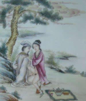 "素女"指房中术《素女经》。将春宫画与小姐观看的习惯,在中国古典文学中也有描写。唐代诗人白行简《天地阴阳交欢大乐赋》就说到《素女经》画册。清代李渔《肉蒲团》中的未央生,为了陶养一位如泥朔木雕、毫无生趣的绝色女子,"到书画铺买幅绝精绝巧的春宫册子,是本朝学士赵子昂的手笔,共有三十六套,唐诗上三十六宫都是春色的意思,拿去放在闺阁之中,好与玉香小姐共同翻阅。"可见在中国古代,春宫图的作用之一是作为进行性教育的媒介。除此以外,春宫图还作为"避火图"、"护书"和"嫁妆画"在民间大量流行。明、清两代,天津杨柳青等地的一些妇女每年春节前将春宫画当做年画销售,这就是有名的"女儿春"。